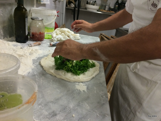 Le pizze e poi, eccolo qua, il ripieno con scarola di mastro Stefano.