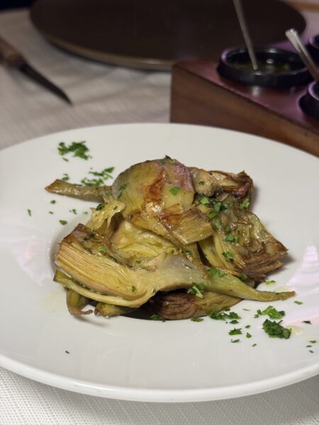 La cucina segue le stagioni in modo naturale. Se è periodo di funghi li trovi, senza bisogno di scriverlo in carta a caratteri grandi. I crostoni, in quei momenti, diventano una tappa fissa. I primi ci sono, ma qui si viene più per condividere, assaggiare, costruirsi il pasto un pezzo alla volta. Asparagi, uova, tartufo, jamon Joselito, una scelta di sostanza che fa felice l’umore.