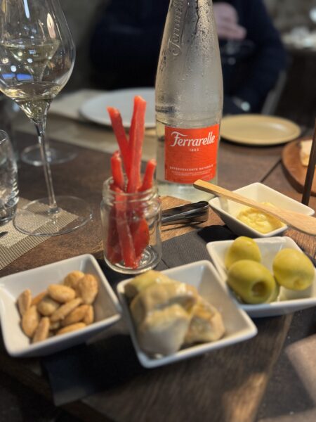 La carne è il centro. È lì che il ristorante ha trovato la sua identità. Tagli scelti bene, cotture pulite, nessuna voglia di complicare le cose. Prima ancora di iniziare ti arriva un piccolo benvenuto con olive, mandorle, burro e coppiette. Ti sistema subito.