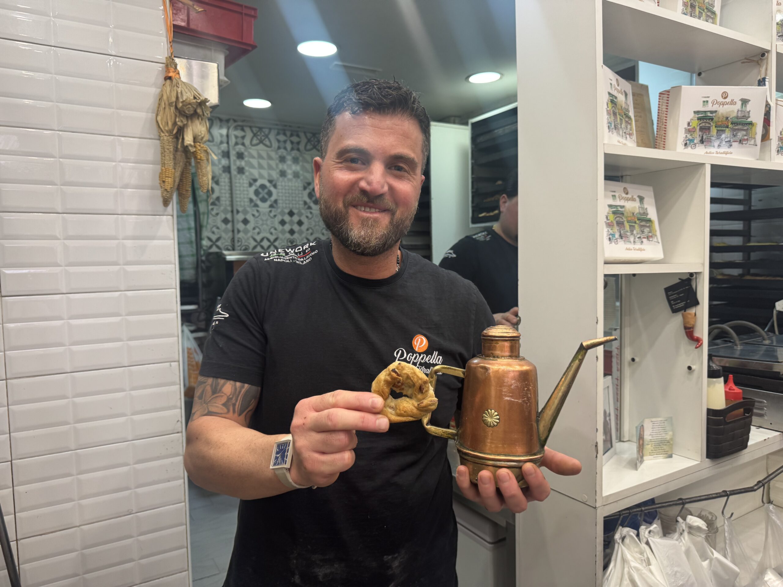 Lello Scognamillo – Antico Tarallificio Poppella 8/4/2025 Torna a: Antico Tarallificio Poppella alla Sanità: taralli ‘nzogna e pepe e pagnottielli made in Napoli Lello Scognamillo – Antico Tarallificio Poppella← PrecedenteSuccessiva →