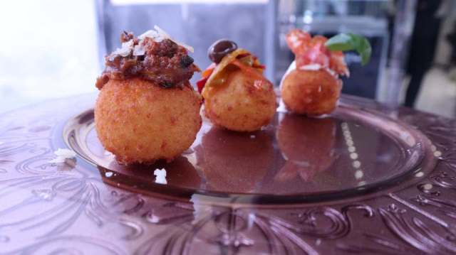 Tris sfere crocchè (Isabella De Cham Pizza Fritta, Napoli)