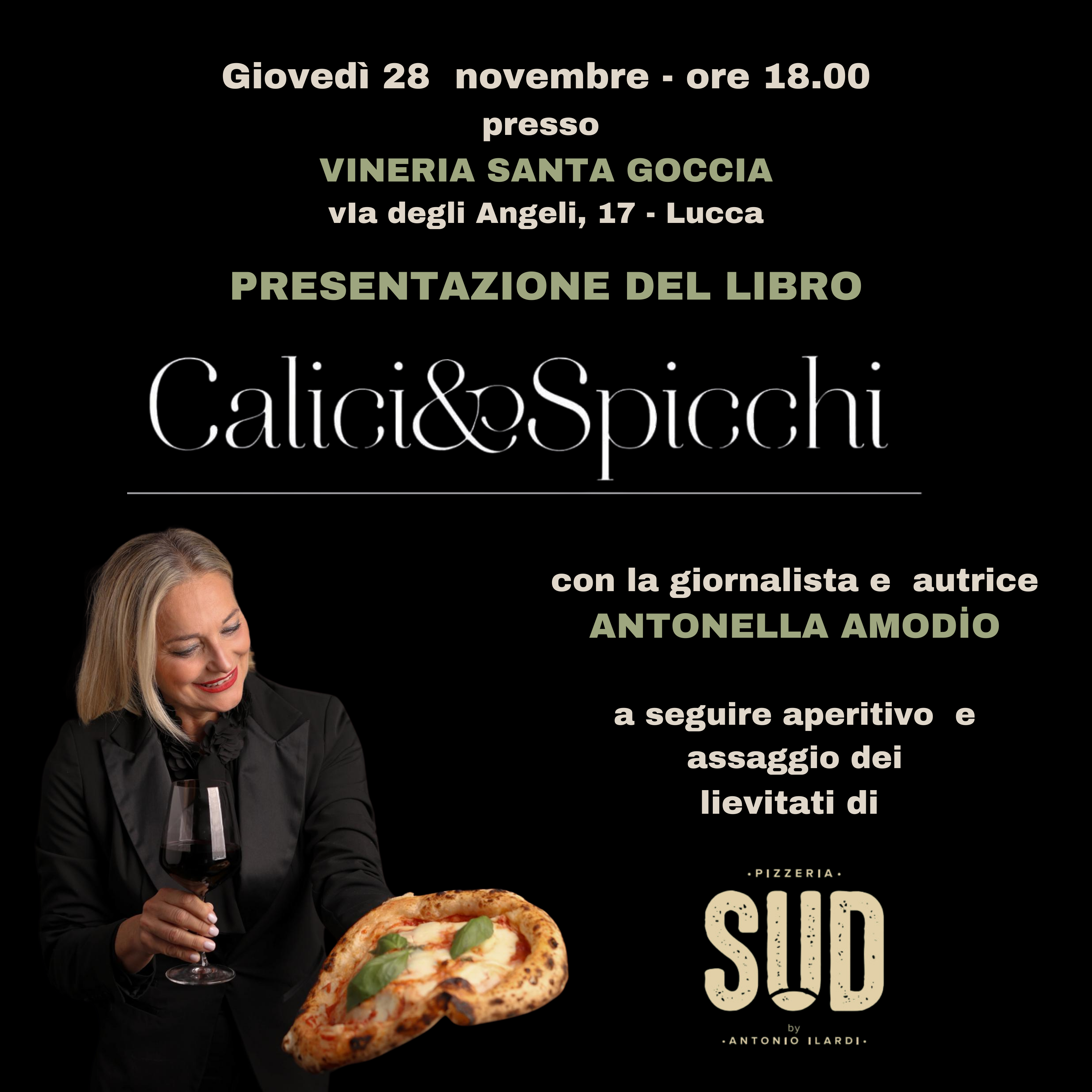 Calici & Spicchi 16/11/2024 Torna a: Antonella Amodio presenta a Lucca il suo libro “Calici & Spicchi” dedicato agli abbinamenti fra pizza e vino