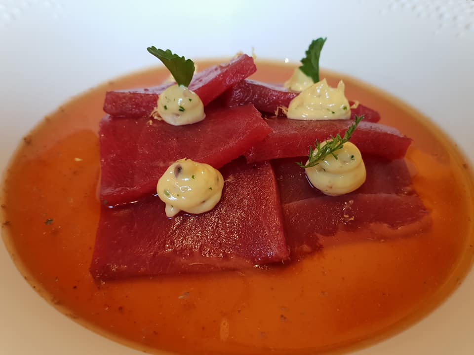 - Plin di anatra, zuppetta di fegato grasso, latte di bufala