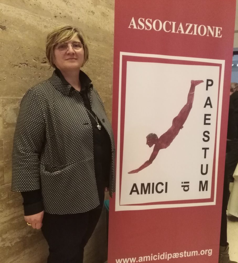 Aperitivi al Parco Archeologico di Paestum Teresa Giuliani accanto al logo Amici di Paestum