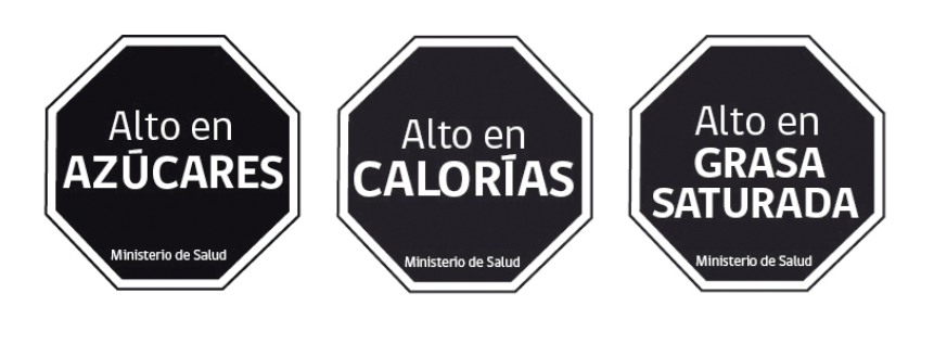 In sostituzione o congiuntamente alla tabella dei valori nutrizionali. Si tratta di un provvedimento recente, fortemente sostenuto dal Senador Guido Girardi ed introdotto dal Governo Cileno, con il quale viene posto l’obbligo di contrassegnare i prodotti dai valori energetici elevati con le scritte:
