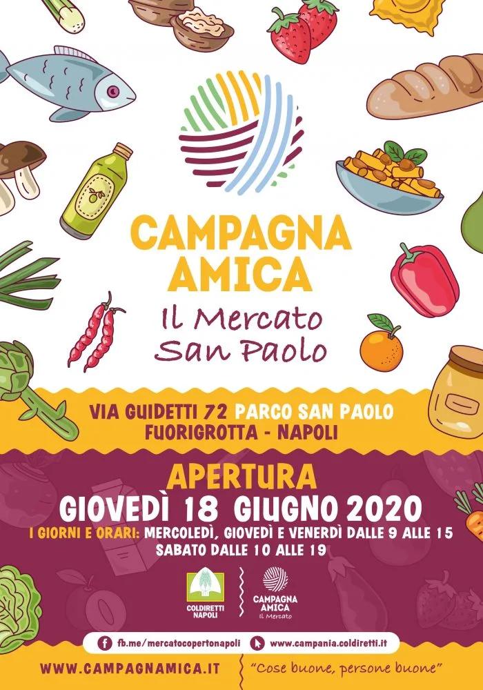 Apre a Napoli il più grande mercato contadino del Sud Italia A Fuorigrotta l’iniziativa di Coldiretti e Campagna Amica 15/6/2020 Torna a: Apre a Napoli il più grande mercato contadino del Sud Italia | A Fuorigrotta l’iniziativa di Coldiretti e Campagna Amica Apre a Napoli il più grande mercato contadino del Sud Italia A Fuorigrotta l’iniziativa di Coldiretti e Campagna Amica