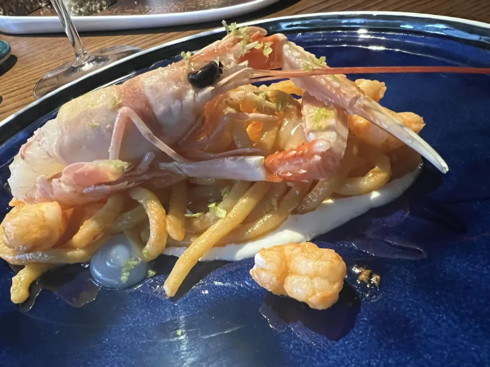 Arca Restaurant, Spaghetti alla chitarra, scampi, stracciatella e lime