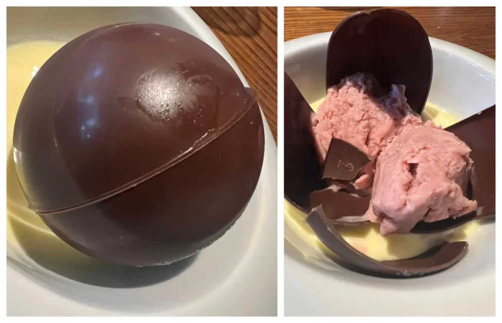 Arca Restaurant, Sfera al cioccolato fondente, gelato al lampone e crema al rosmarino