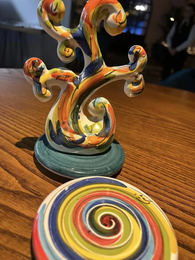 La prima tappa, o l’ultima, dipende dai punti di vista. Quella dei souvenir, dei tanti laboratori di ceramica, piena di turisti tutto l’anno, quella che deve accontentare le richieste, più che parlare di identità. La ristorazione è , nella maggior parte dei casi, a servizio del gran numero di visitatori che arrivano quotidianamente. Poi, ci sono le dovute eccezioni, quelle più identitarie, ed è tra queste che si vuole posizionare Arca, il ristorante di Armando Lembo, chef e patron. Appena finisce la discesa che porta alla Marina. Un fantastico colpo d’occhio, dal ponte del torrente che guarda il tramonto sul mare.
