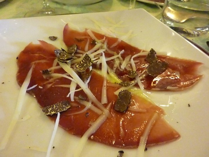 A proposito di prodotti di qualità, ecco il prosciuttino di cinghiale con il tartufo nero di Bagnoli e il caciocavallo presentati tra gli antipasti.