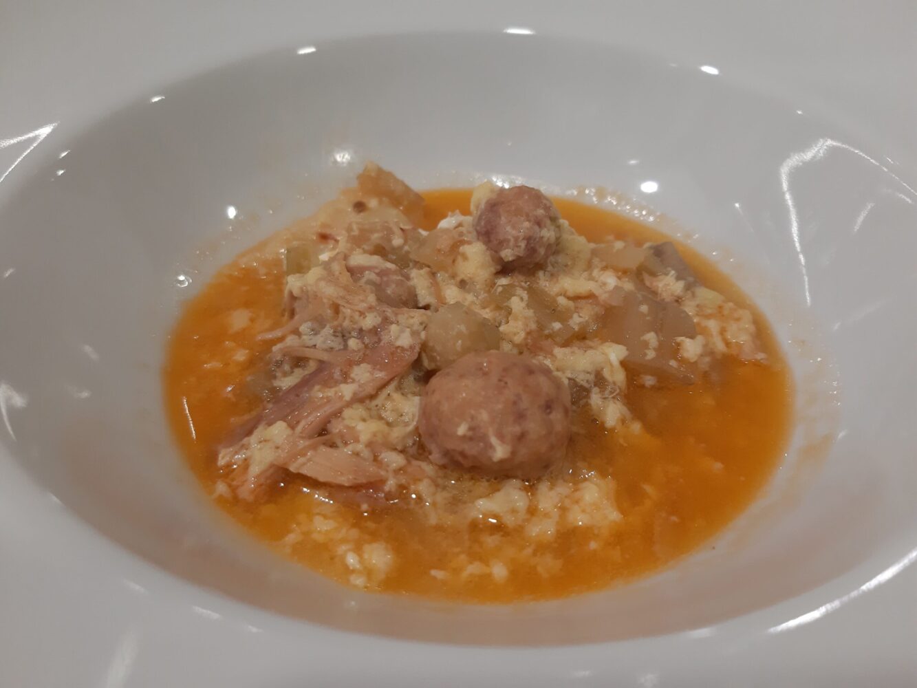 Stesso discorso per questo pancotto trasformato in una sorta di polpetta di pane avvolta nel lardo.