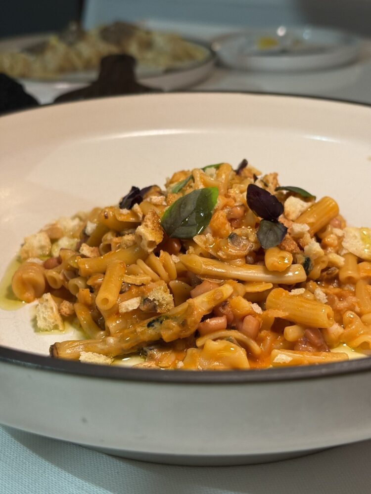 Quando arriva il momento dei primi, la scelta si fa ancora più complessa. Le proposte spaziano dalla Lardiata gialla agli spaghettoni ai porcini, fino alle paste miste della tradizione. Optiamo per due piatti che rappresentano bene l’identità della cucina di Mariano. La Pasta mista aMMare, ricca e piena, racchiude la forza dei sapori marini di questa terra.