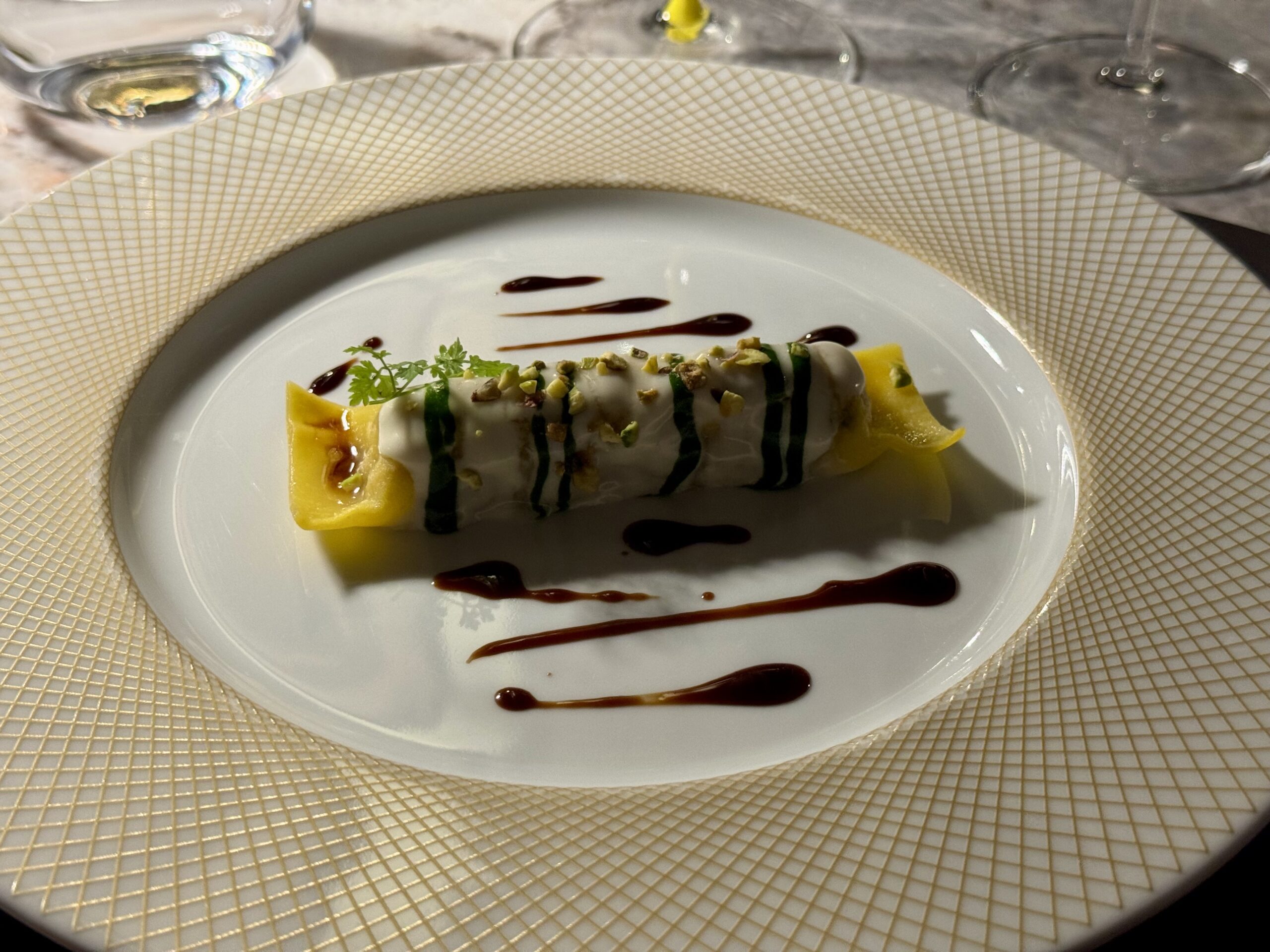 Caramelle di pasta ripiene di coniglio, parmigiano vaccche rosse, vermouth e pistacchi – Aroma Restaurant, Roma 5/8/2025 Torna a: Aroma Restaurant a Palazzo Manfredi: alta cucina con vista Colosseo Caramelle di pasta ripiene di coniglio, parmigiano vaccche rosse, vermouth e pistacchi – Aroma Restaurant, Roma← PrecedenteSuccessiva →