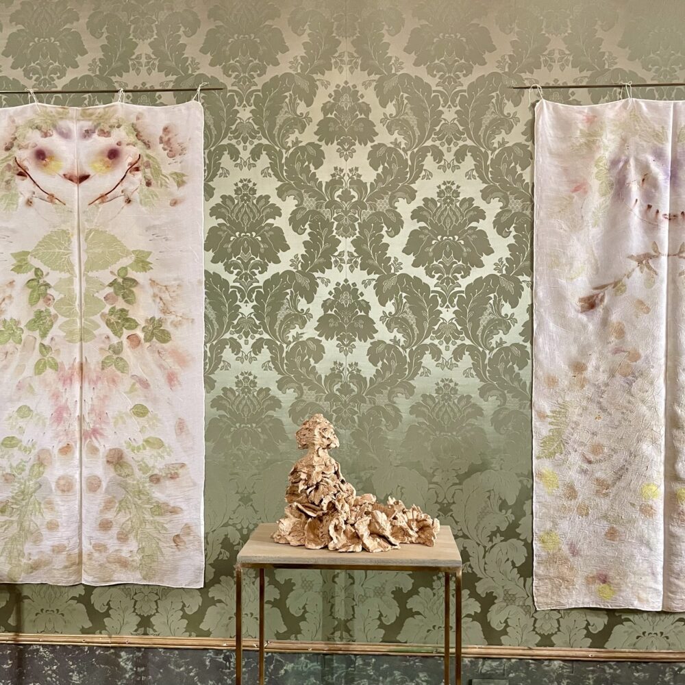 Arte a San Leonardo di Chiara Camoni- Spiritelli di Terra e Vegetazione, stampe vegetali su seta e scultura in gres smaltato