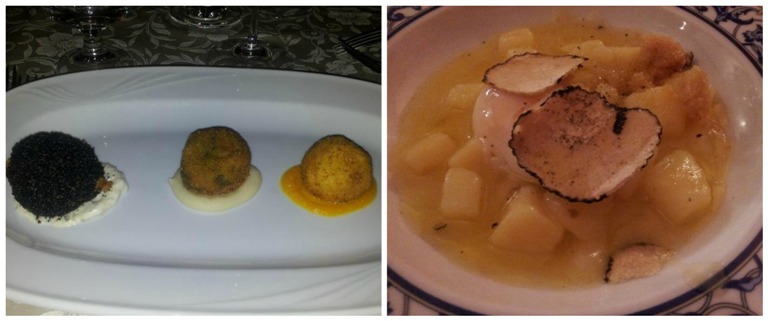 polpette di benvenuto e uovo di Parisi cotto a bassa temperatura con lamelle di tartufo nero nostrano