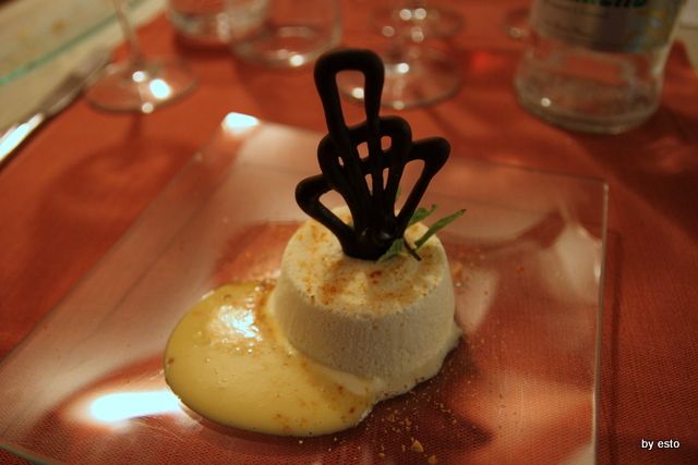 Il dolce, che chiude in bellezza la serata, è un Semifreddo Pralinato al Latte di Mandorla, cremoso alla pesca e cioccolato fondente accompagnato da piccola pasticceria. Gradevolissimi gli accostamenti tra gli ingredienti che si fondono perfettamente mentre si sciolgono piacevolmente in bocca.