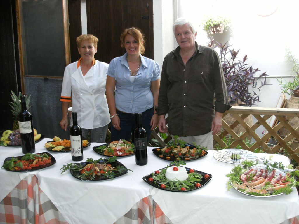 A Luciano raccomando sempre di farmi assaggiare soltanto un primo ed un secondo possibilmente a base di pesce, ma non c’è niente da fare, è fatica sprecata. Ogni volta mi presenta immancabilmente una miriade di antipasti vari che non si possono assolutamente rifiutare. Sfiziosità che stuzzicano il palato e appagano la libidine. E proprio questo si è verificato pochi giorni fa, quando sono andato a pranzo alle Macine accompagnato da Vincenzo Mercurio e la sua gentile signora. Il famoso enologo e la moglie sono rimasti entusiasti della cucina di Luciano e della sua fattiva collaboratrice, la brava ed esperta cuoca Grazia Marra, ed hanno espresso il loro totale apprezzamento.