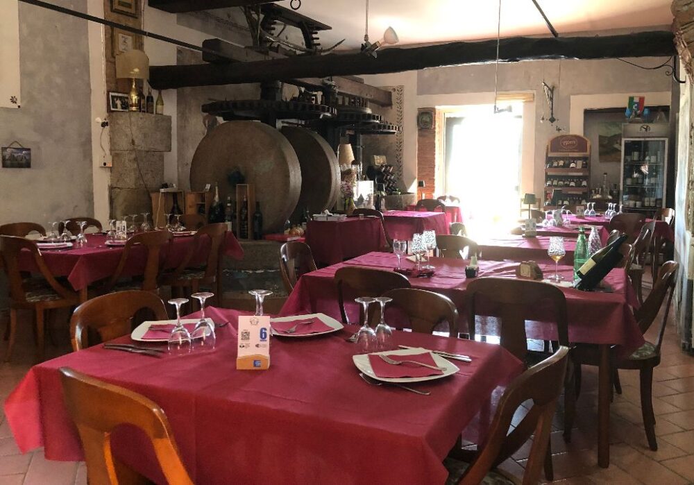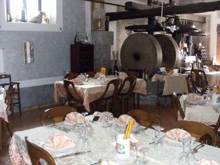 Ambiente accogliente e minimale, in cui al centro troneggiano proprio due macine, che in passato servivano per la molitura delle olive nel vecchio frantoio. Con la bella stagione poi funziona anche lo spazioso e comodo spazio esterno. Ai fornelli si destreggia con consolidata bravura la chef Maria Grazia Marra, mentre in sala si muove come al solito con molta esperienza, cortesia e disinvoltura il patròn Luciano Ferolla.