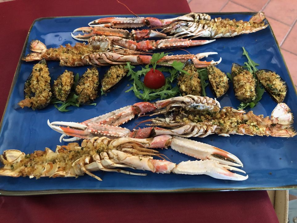 Scamponi e cozze gratinati al forno.