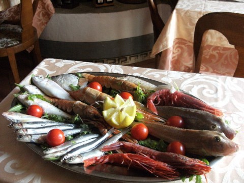 Qui vengono usati soltanto prodotti del territorio, sani e genuini e il pesce è sempre fresco di giornata. Tra i tanti antipasti dell’orto, a base di verze, fagiolini, pomodori, zucchine all’uovo, peperoni e lattuga in insalata e poi quelli marinari, sono da provare assolutamente gli “sfizi di terra e di mare”, con innumerevoli portate, per lo più di pesce, cucinati in tutte le maniere e poi la scarola e le melenzane “’mbuttunate” e il carpaccio di pesce spada.