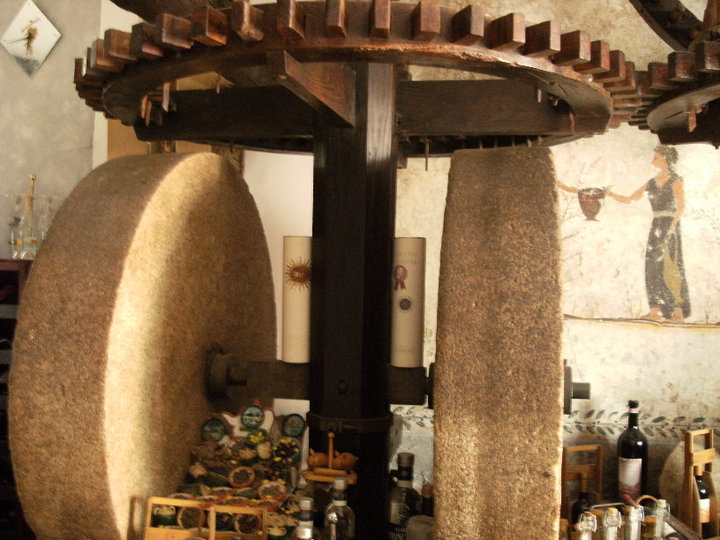 Dal 1992 Luciano ha aperto il suo ristorante in un vecchio frantoio, con tanto di macine in bella mostra appunto, recuperato e ristrutturato, tanto da ricavarci tre locali, oltre la spaziosa cucina: un’ampia sala da pranzo, una saletta più piccola per la ristorazione e che funge anche da location per la degustazione dei vini e un wine-bar, modello teutonico. I piatti sono curati dalla signora Grazia Marra, brava ed eccellente cuoca.