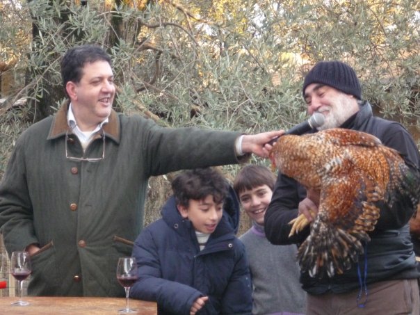 Lombardo con un berretto da marinaio calcato sulle orecchie, gira tra i tavoli e ogni tanto “molla” un piatto carico di soppressata, Stringata e formaggi. A tavola ci sono i vini di Agricola San Teodoro, l’azienda della famiglia Santoro, proprietaria di circa 40 ettari di terra tra San Prisco e Galluccio. Il Campapietro, un Aglianico franco ed equilibrato, accompagna piacevolmente i salumi e la polenta con sugo e salsiccia che fuma copiosamente. Alle 15,30 tutti in cortile. Nel corso dell’asta battuta da Luciano Pignataro, assistito da Dante del Vecchio in funzione, per l’occasione, di notaio, uno a uno, i capponi sono catturati e sfilano tra il pubblico, sostenuti per le zampe da Lombardo che ne mostra con fierezza grandezza e piumaggio. Ognuno troverà un assegnatario pronto ad aggiudicarsene uno per un prezzo decisamente interessante: fino a novanta euro per un animale di circa sei chili di peso.