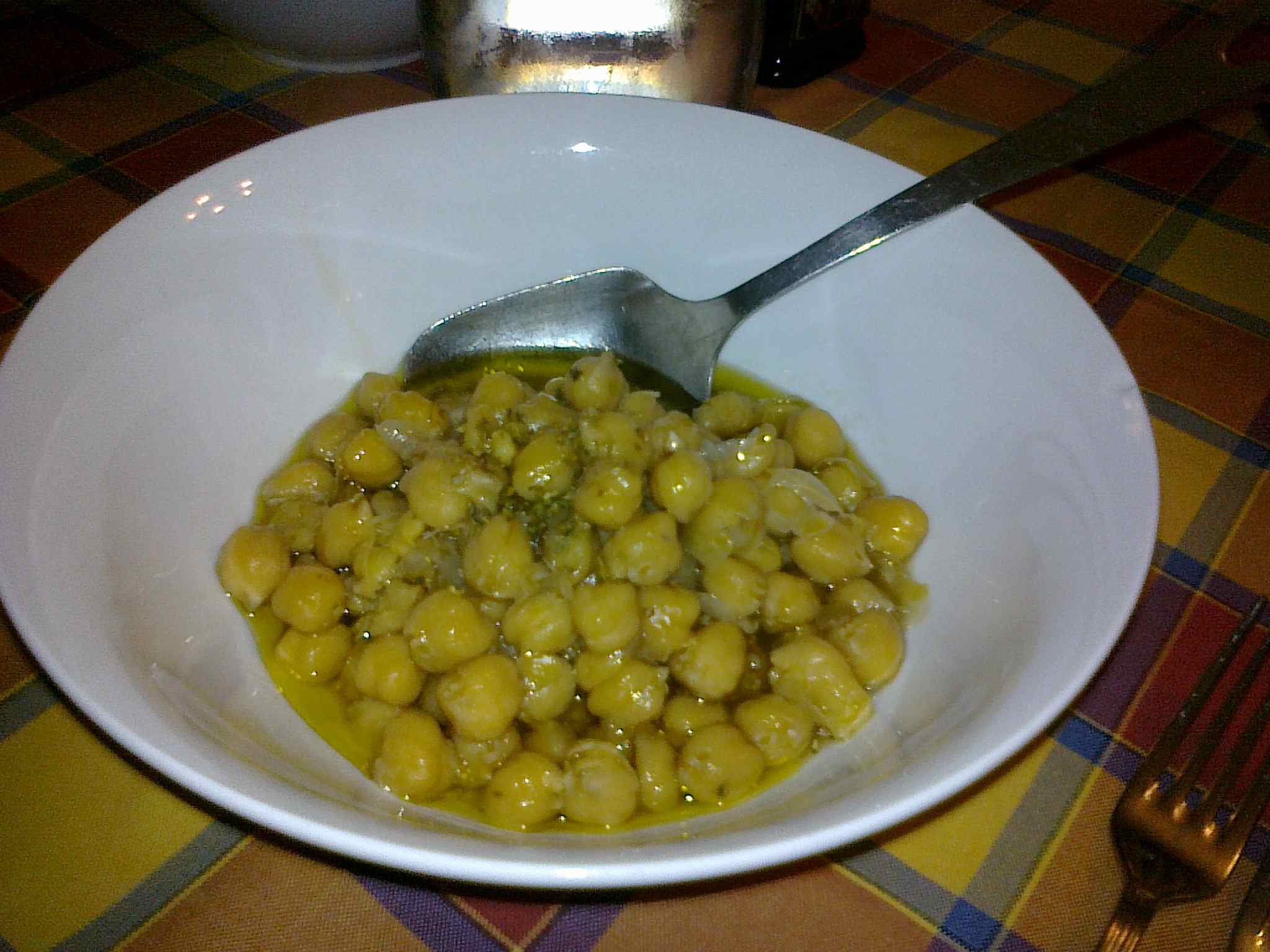 La zuppa di ceci è di una semplicità assoluta. Che vuol dire solo ceci, acqua, olio, sale e un pizzico (quasi impercettibile) di origano. Ovviamente l’olio extravergine di oliva è di qualità, i ceci anche e la cottura è perfetta: interi, sodi e teneri allo stesso tempo.