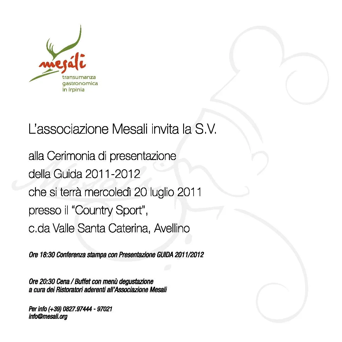 invito_guida_mesali 15/7/2011 Torna a: Avellino, 20 luglio. Presentazione della Guida Mesali 2011/2012