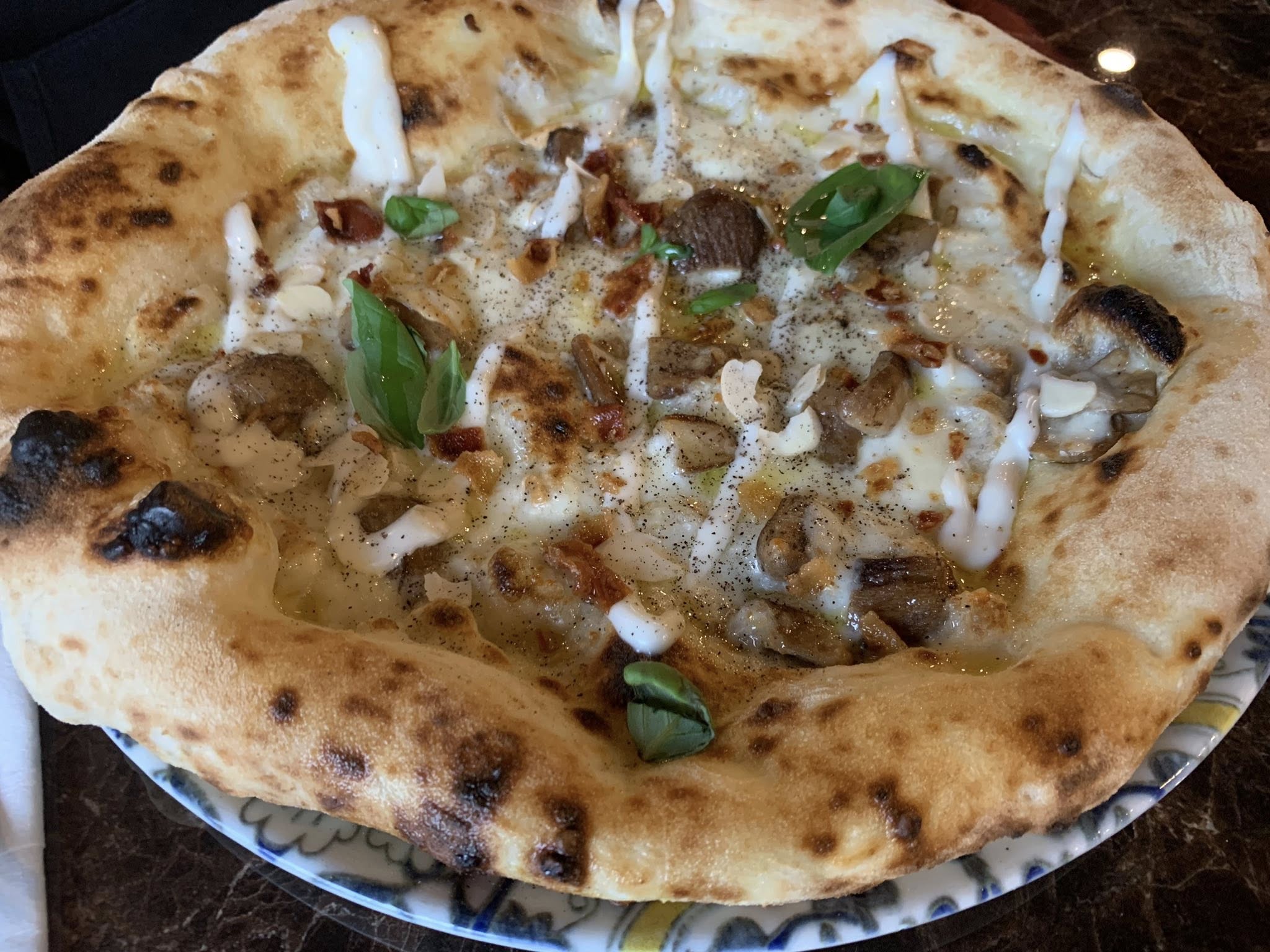 Ampia la scelta, dalle tradizionali (margherita a 6 euro, prezzo commovente) a quelle con le farciture con prodotti di stagione, a partire dal trionfo di funghi e tartufo in queste settimane d’autunno. Una quindicina di “speciali” con ingredienti e spezie particolari, oltre all’ampio repertorio napoletano classico.