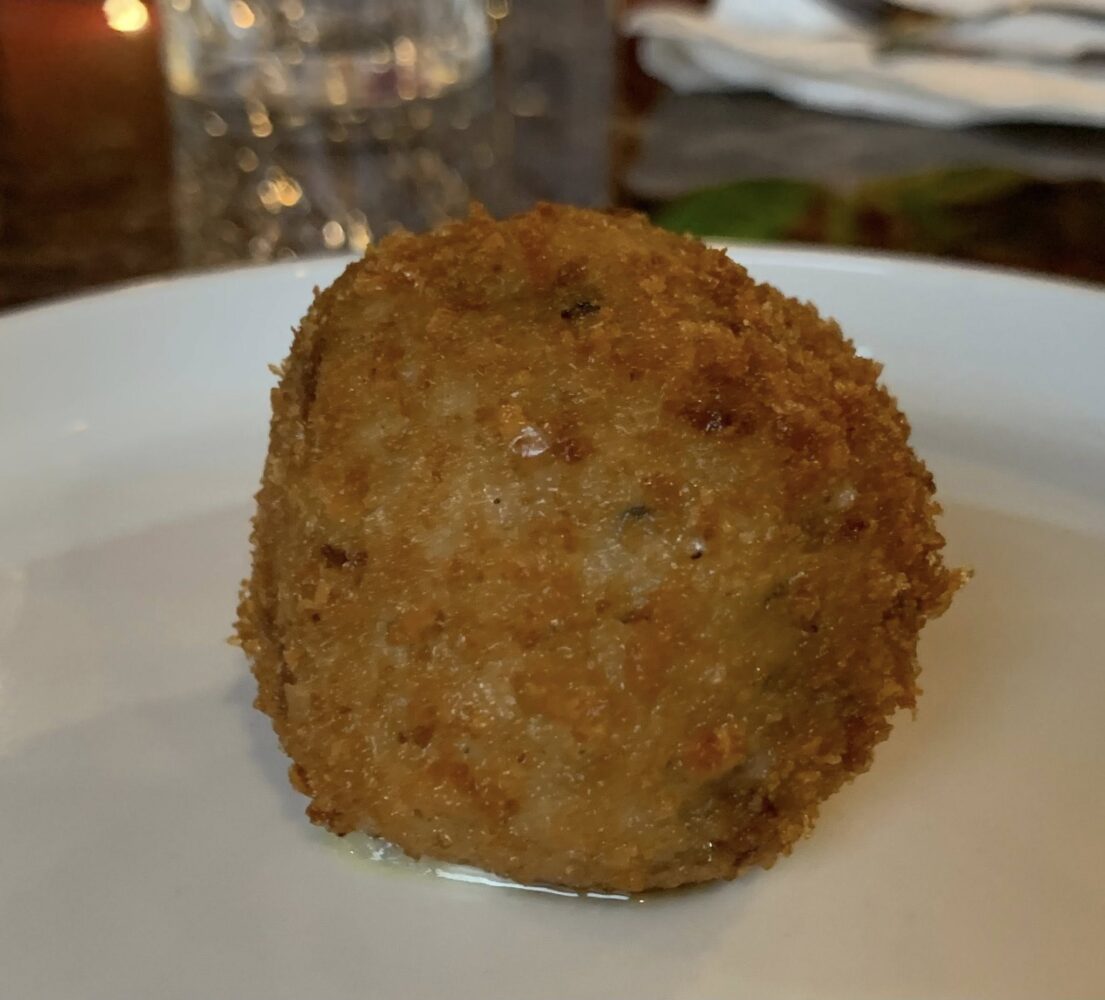 La frittura è ben eseguita, non unta, croccante al punto giusto, ad esempio nel caso degli arancini con porcini e tartufo. Buona anche la frittatina con i bucatini, sfiziosa quella all’aglio e olio.