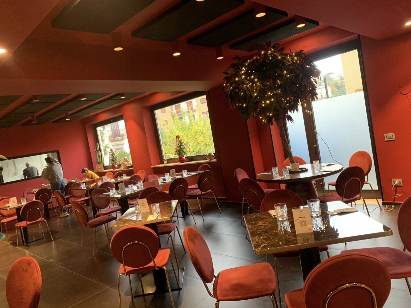 Siamo a due passi dalla cinquecentesca Chiesa della Trinità, oggi chiusa al culto, in un angolo tranquillo della città dove prima del sisma del 1980 convivevano botteghe storiche e dinamiche di vicinato proprie della vita di quartiere. Il locale della pizzeria Il Marajà è stato completamente rinnovato, con arredi eleganti, tavoli ben distanziati, sedute comode e il colore rosso-arancio che restituisce un’atmosfera calda e gradevole.
