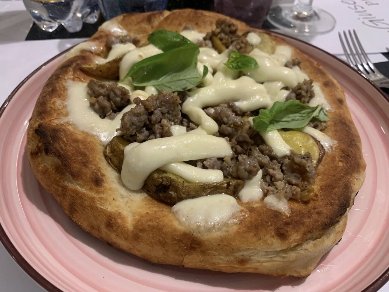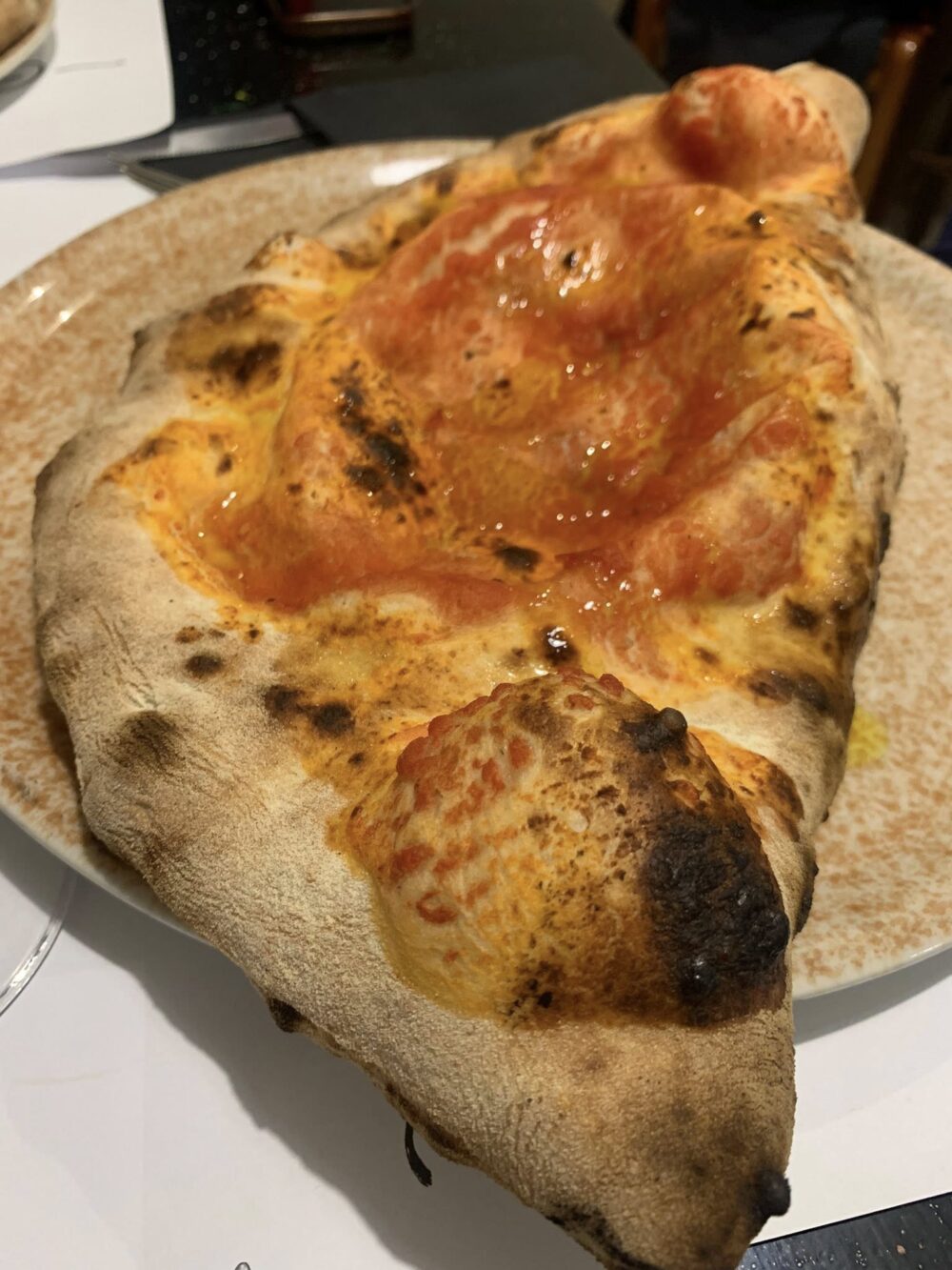 Poche concessioni alle mode anche per ciò che concerne le pizze: base sottile, cornicione leggermente gonfio ma non preponderante, lavorazione lunga con un impasto altamente digeribile. Ben eseguito anche il ripieno, saporito di ricotta e salame.