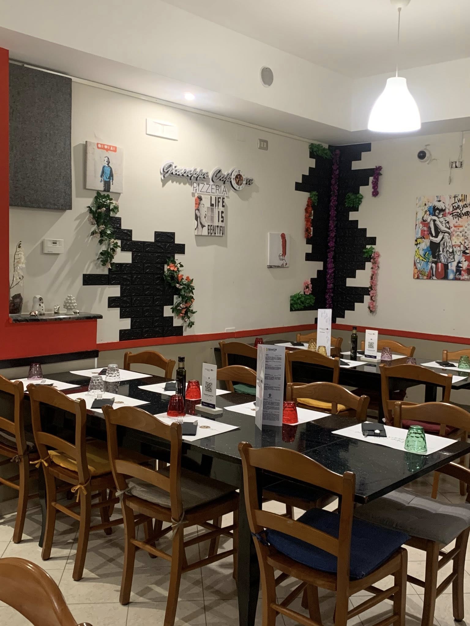 Qui, grazie anche alla simpatia e cortesia di un servizio attento e spigliato ci si sente davvero a casa di Giuseppe: forno a legna vecchio stile all’ingresso del locale, rivestito con piccole mattonelline d’antan.