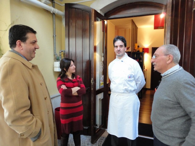 Solita giornata, densa di impegni…come al solito il Pigna vuole ottimizzare anche i minuti/secondi (poco meridionale…in questo) e allora dopo aver peregrinato per varie cantine ci troviamo a tavola per rilassarci un attimo? Nooò, macchè…abbiamo dato appuntamento al vigneron di Summonte-Montefredane, Ciro Picariello, a ” Il Ritrovo degli Artisti” per fare il punto sulla sua esperienza rispetto all’annata 2010 del Fiano di Avellino (se non questo, quale?). Ci accoglie la solare (si dice così di una ragazza sempre allegra e sorridente?) Diana D’Urso, ventisette primavere, diplomanda Ais e laureanda in storia dell’arte, con il papà Antonio, imprenditore conciario di lungo corso, nonchè esperto sommelier, insieme allo chef Giuseppe Saraceno. Nipote d’arte, infatti il nonno di Diana negli anni ’50-’60 possedeva due dei più noti ristoranti di Salerno, al porto, ma l’esigenza di ampliare portò l’amministrazione comunale dell’epoca ad espropriare i locali. Ma il lupo( in questo caso la lupacchiotta)…perde il pelo ma non il …ristorante!!! Così, cinquant’anni dopo, riesplode la passione di famiglia per la ristorazione e si mette su questo gingillino tutto votato al territorio ed ai suoi prodotti.