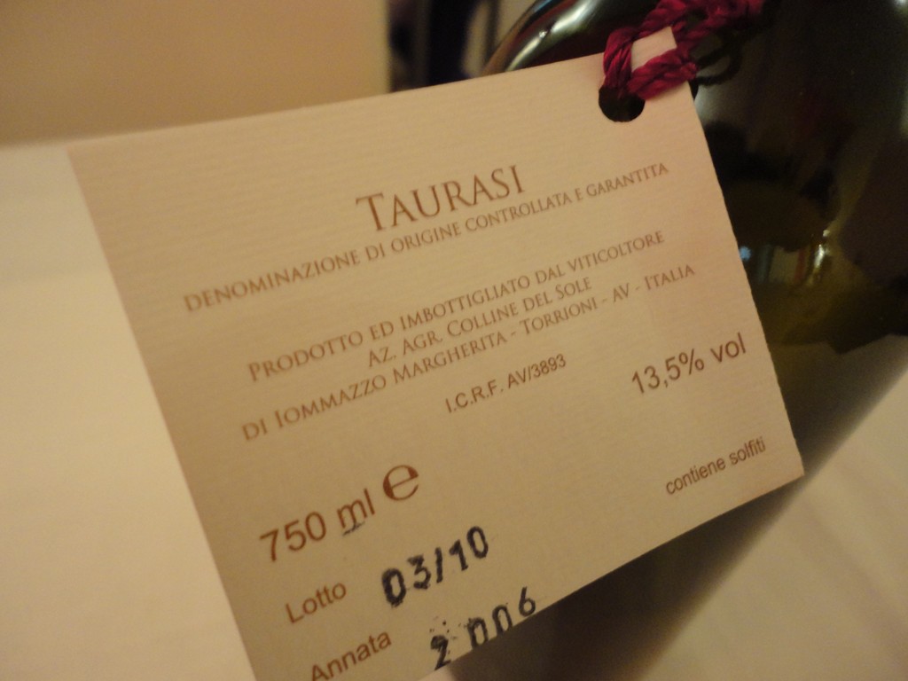 Eh, la France…che deliziosi formaggi produce…nevvero, Luciano??? ;-)) Approfittiamo del Carmasciano per abbinare l’ottimo Taurasi 2006 di Colline del Sole, fino ad ora usato a mo’ di sorbetto tra una portata e l’altra. Lodevole anche l’iniziativa azienda-Ritrovo degli Artisti, in collaborazione, tesa al recupero delle bottiglie vuote.