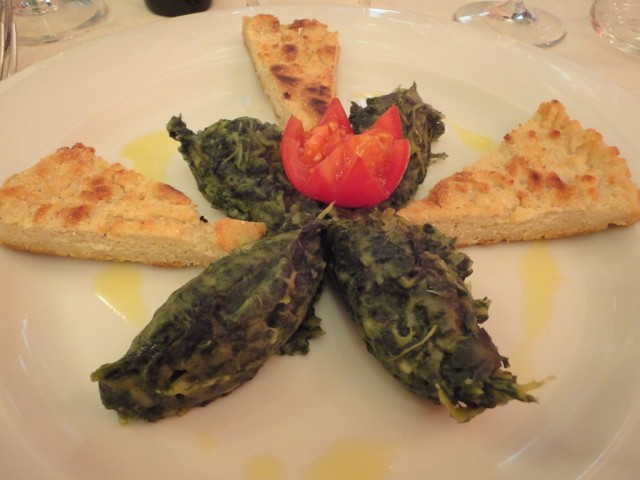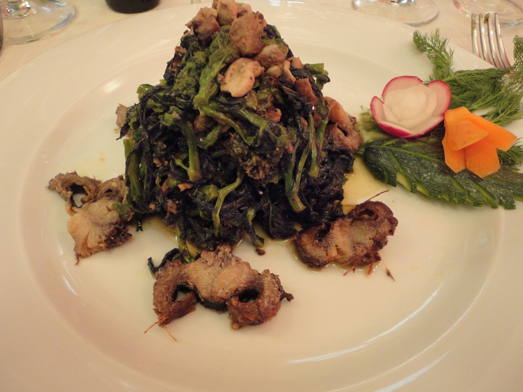 Ancora una volta il Pigna c’ha visto lungo : nonostante avessimo praticamente diviso in tre le generosissime porzioni serviteci, siamo satolli!!! Ma come si fa a dire no a “le polpette di friarielli su genovese di Ramata di Montoro con tartufo di Bagnoli e Carmasciano in scaglie”???