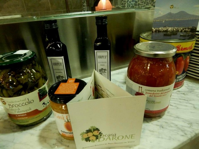 Nella seconda avviene lo staglio e poi altre 12 ore di lievitazione. Qui si usa farina Caputo “ricca” con idratazione al 65%. Per quanto riguarda i prodotti, cioè il “companatico” che va sul disco di pasta, Marco attinge a piene mani dal territorio irpino : Broccolo Aprilatico di Paternopoli, aglio dell’Ufita, olio di Ravece Hirpus (rigorosamente a crudo), cipolla ramata di Montoro, lardo e salumi di maiali “pesanti” di Mario Laurino, il tartufo di Bagnoli irpino, e sconfinando nella provincia di Salerno, ma solo in termini geografici (il nonno di Paolo era Luigi Capone, noto casaro di Montella), il fior di latte di mucche Jersey di Paolo Amato.