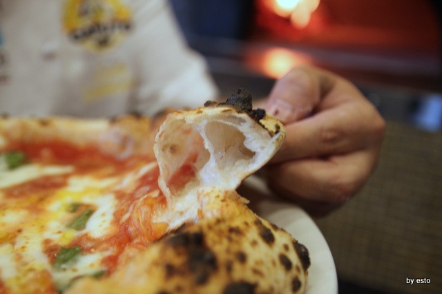È un impasto talmente idratato che soltanto lui e la sua fedelissima squadra sanno ammaccarlo, guarnirlo, infornarlo.