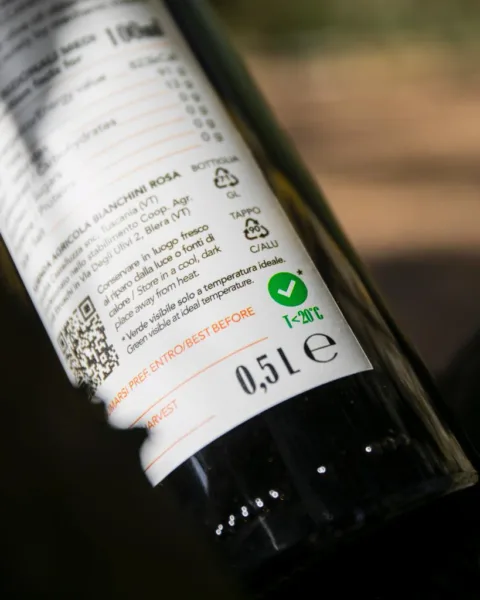 Ma Rosa e Giorgio non si sono fermati a questo. Il loro principale intento è quello di “trasformare l’olivicoltura grazie a un impiego etico della tecnologia” per salvaguardare l’ambiente e curare le piante in modo naturale e con il minimo intervento invasivo. Ecco spiegato l’utilizzo del caolino per proteggere gli ulivi dall’eccessiva calura estiva e nei periodi di attacco della mosca e il monitoraggio anche in quest’ultimo caso tramite strumenti tecnologici appositamente studiati e messi a punto ad hoc. Ma non è tutto, poi c’è la parte creativa, il vero e proprio ingegno applicato nel concreto alle etichette sulle bottiglie: il Bollino Termocromico.