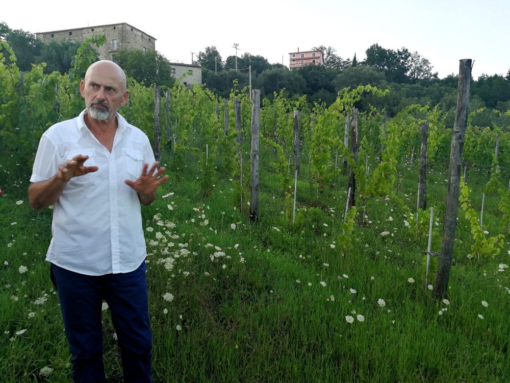 E per l’affinamento ha scelto le anfore di argilla, “non solo perché hanno una micro ossigenazione similare al legno senza la concia di quest’ultimo, ma perché le anfore nella nostra cultura ci sono sempre state. Ricordo quelle che utilizzava mia nonna, le ritrovo sul territorio e le sento familiari”.