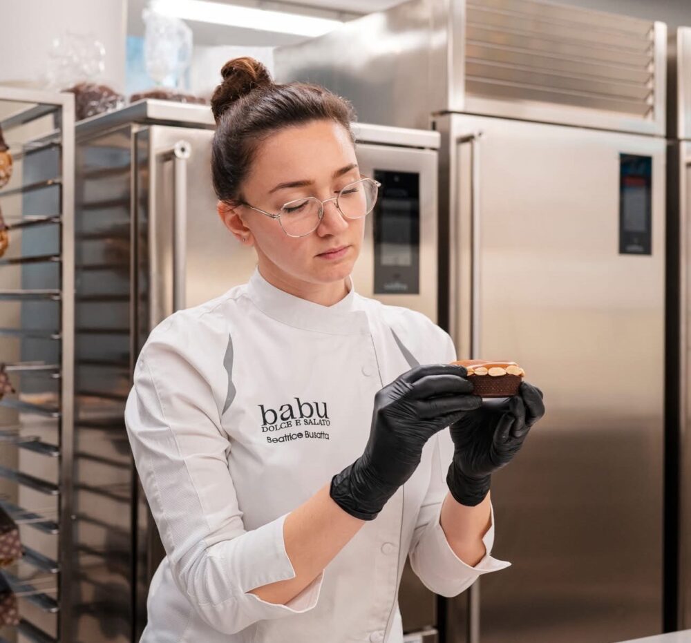 convenzionale, per poi affinare la tecnica pasticcera accanto a maestri come Denis Dianin e Iginio Massari. Un bagaglio che oggi non viene
