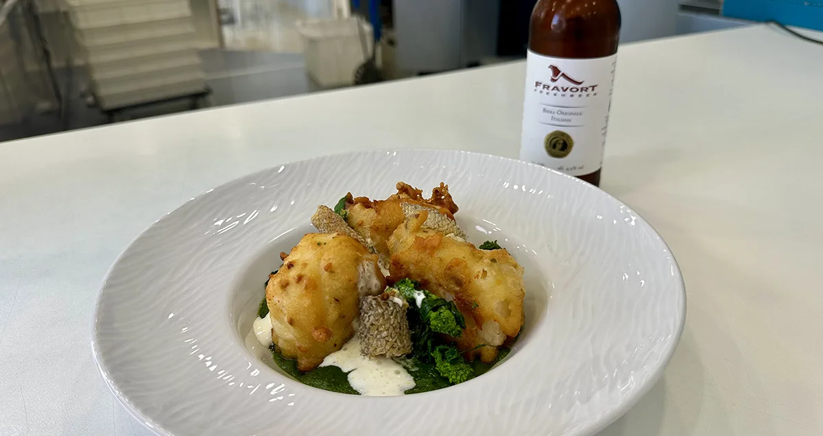 La birra scelta in abbinamento a questa ricetta è una Fravort Fresh Beer, poiché la sua bassa fermentazione, l’armonia e l’equilibrio dei suoi ingredienti, la rendono perfetta come birra da accompagnare alla nostra preparazione.