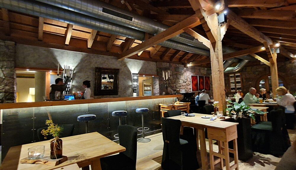 Seduta nella sala che si affaccia sulle montagne, con la luce che penetra tra le travi, mi sono trovata a riflettere: qui tutto è pensato per rigenerare corpo e mente. Ogni gesto è misura, ogni piatto — non ristorante ma food retreat — è coerente con l’idea di salute e natura. Vale lo stesso con i vini, niente di scontato, tutto selezionato e scovato da Gregor per completare il discorso al meglio e i NOLO?