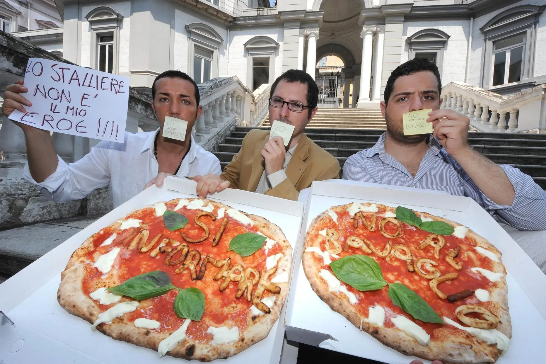 pizza non al bavaglio 1/7/2010 Torna a: Bavaglio alla stampa, anche Gino Sorbillo protesta e fa la pizza sulla libertà di stampa Gino Sorbillo con l’ex assessore provinciale verde Francesco BorrelliSuccessiva →