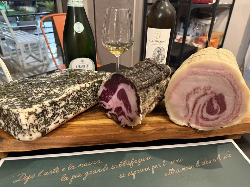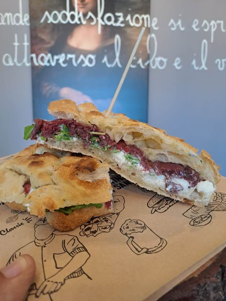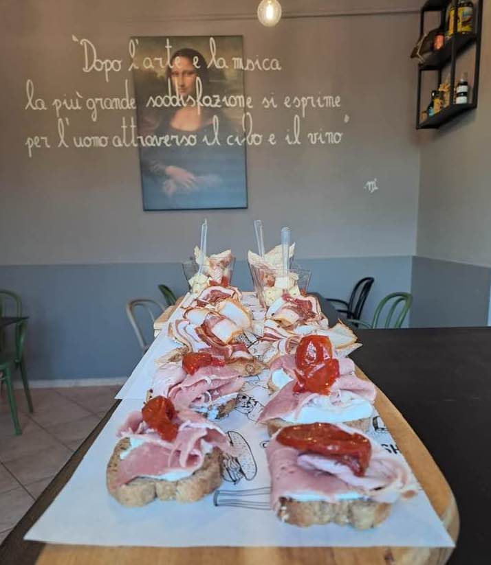 Che veniate per un aperitivo o per una cena frugale, sappiate che cadete bene, con taglieri di salumi e formaggi di eccellenza, con una croccantissima foccacia ripiena di quel che volete e con baguette farcite di ogni ben di dio (salumi, formaggi, affumicati di mare).
