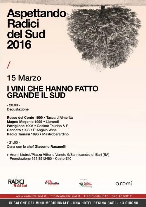 Aspettando Radici del Sud 2016: i vini che hanno fatto grande il Sud 10/3/2016 Torna a: Bari, 15 marzo. Aspettando Radici del Sud 2016: i vini che hanno fatto grande il Sud Aspettando Radici del Sud 2016: i vini che hanno fatto grande il Sud
