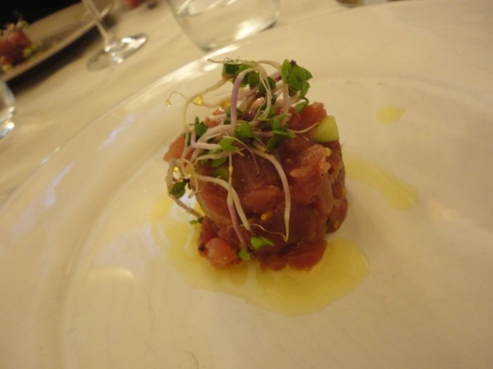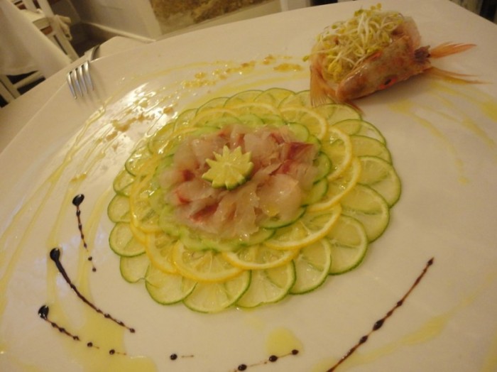 Ma come ci sono arrivato al centro di Bari, a una schiocco di dita dal palazzo comunale del sindaco Emiliano, si si proprio quello delle cozze pelose e delle spigole nella vasca da bagno!!! Ebbè, domanda retorica, questa…mi ci condotto il re (stavolta vestito di tutto punto) di Radici Wines, Nicola Campanile, esperto conoscitore di tutto ciò che si mangia e si beve in Puglia…e non solo!!! E di fronte a quel ben di Dio di crudo che mi si apre allo sguardo, devo dire che, come al solito, Nick si è superato…Incominciamo dalla tartare di tonno, sapore intenso ma semplice e …”naturale”.