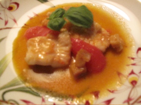 Non state qui a chiedermi della doppia panna. Telefonate allo chef. Io ero troppo preso dall’eleganza dei furibondi contrasti capaci pero’ di non urtarsi una volta posti a contatto delle papille. Questo mi pare un piatto di difficilissimo ma raggiunto equilibrio. Quante volte l’avranno provato ,prima di proporlo? A lato, ancora più sconvolgente, una gelee’ di papaia all’aceto di champagne con carpaccio della sogliola medesima. Perfetto? No: perfettissimo!