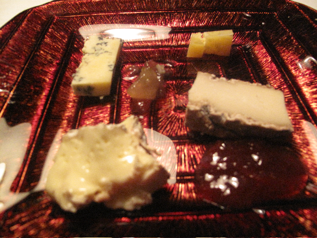 Mi lascio tentare da un piccolo assaggio, che ha compreso un bagoss di 24 mesi, un taleggio delle mie terre muffato come si deve, un brie de montereux ed un erborinato d’auvergne, accompagnati da un paio di adeguate confetture maison. Magnifici, affinati perfettamente e conservati al meglio.