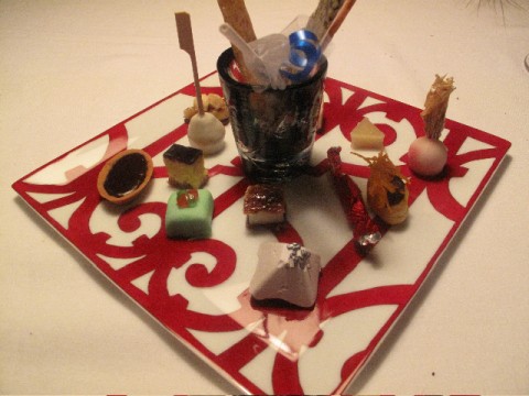 Per non parlare di immaginazione e poesia al potere degli innumerevoli dessert. Che dire infatti di: MOUSSE DI CIOCCOLATO BIANCO,SALSA DI CEDRO, COGNAC o CAPRESE TIEPIDA,PURE’ DI RICOTTA AL MIRTO, SALSA DI FILETTO DI POMODORO E BASILICO od ancora per finire: ZUPPA DI CARBONARA CON QUENELLE DI FRAGOLE E CIAMBELLE FRITTE ALLE NOCI? Dodici dessert, signori, mica patatine ogm.